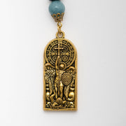 Elevate your style with our Amazonite Gold Sacred Heart Bracelet. Made with a gold-plated two hearts rosary and a stretch design for easy wea...