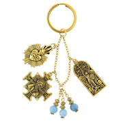 Carry your faith with you everywhere with this stunning Saint Michael Adoration Keychain. Featuring antique gold plating paired with shimmering aquamarine beads and sparkling crystals, this 5-inch keychain showcases three meaningful dangles: a 1½-inch Saint Michael medal, a 1½-inch Sacred Heart pendant, and a 1¼-inch Saint Benedict charm. The 8mm aquamarine beads add elegant color while the precious metal finish ensures lasting beauty. Perfect for daily inspiration or as a meaningful gift for any Catholic devotee.