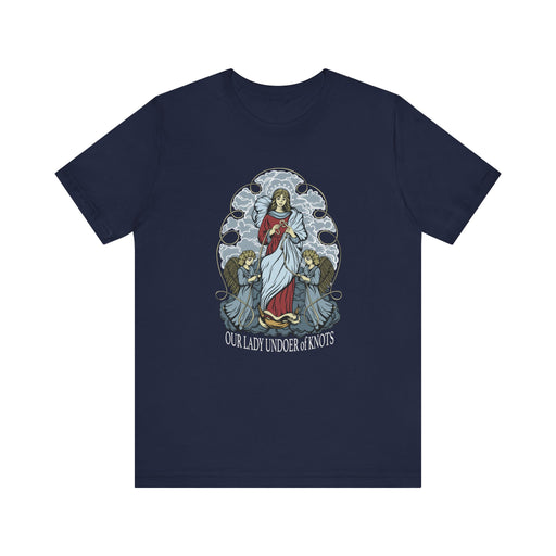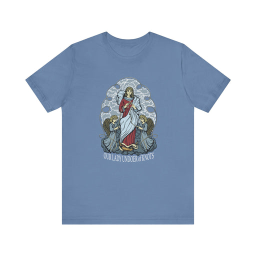 Honor the beloved devotion of Our Lady Undoer of Knots with this beautifully designed tee. Thoughtful, comforting, and wearable anywhere—from daily...