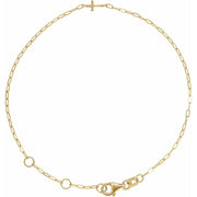 Elegant and meaningful, this 14K gold sideways cross bracelet features a modern paperclip link chain with a polished finish. Designed for effortless wear, it offers a delicate yet durable design, making it perfect for everyday styling or as a cherished faith-inspired gift.