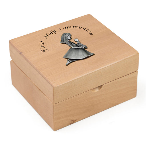 Celebrate your little girl's First Holy Communion with our beautiful maple wood keepsake box. Adorned with a fine pewter kneeling girl casting and ...