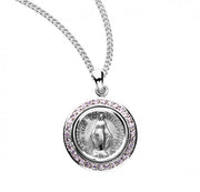 Sterling Silver Round Pink Cubic Zirconia Miraculous Medal