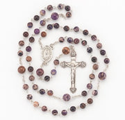 Delight in the divine with our Round Jasper Purple Rosary. Each bead is crafted from 6mm Imperial purple jasper, with larger 8mm Imperial blue jasper Our Father beads. The rhodium plated brass wire and chain create a sturdy and stylish design. The exclusive sterling silver Miraculous Medal center and crucifix add a touch of elegance. Comes in a deluxe velvet box. Made in the USA.